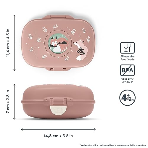 Monbento - Porta Merenda Bambini MB Gram Fox - Perfetto per Pranzi o Merende a Scuola/Parco - Senza BPA - Sicuro Per Uso Alimentare - Motivo Volpe - Rosa Cannella