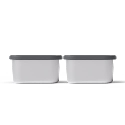 MONBENTO - MB Side Small - Set di 2 scatole per il pranzo Scatola a scomparti in acciaio inox con coperchio ermetico - Scatola rimovibile per il pranzo caldo elettrico - ideale lavoro/ufficio - Grigio