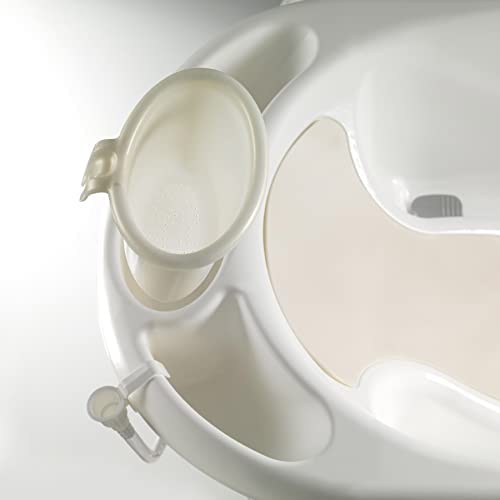 include vaschetta baby bagno con 2 sedute anatomiche e antiscivolo (una inclinata per bimbi da 0 a 6 mesi e una seduta con braccioli per bimbi da 6 a 12 mesi)