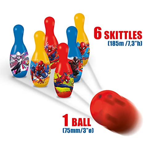 Mondo Toys - Set da Bowling Spiderman per bambini - INCLUDE 1 palla e 6 Birilli tema Spiderman - giocattoli di Sport - gioco per bambini 2 3 4 Anni - 28075