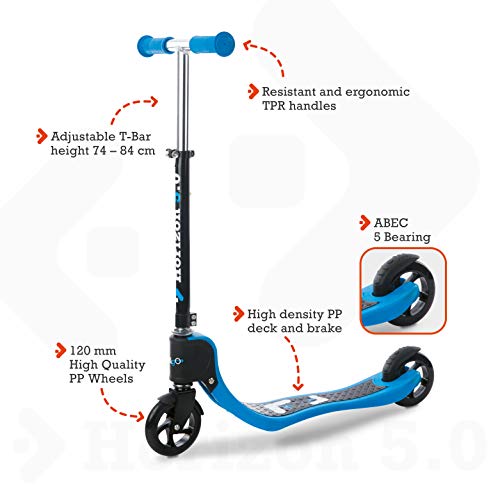 Mondo On&Go - Horizon 5.0 Monopattino 2 ruote in alluminio- Ruote in PP e manopole TPR - freno di sicurezza posteriore - Colore Blu