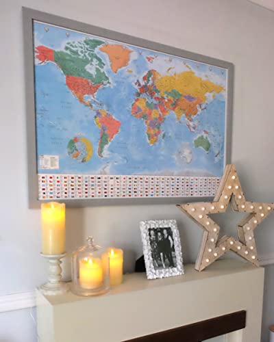 Mondo Mappa Bacheca con Cornice in Argento Legno Include 100 Pins - 96.5 x 66 CMS (96,5 x 66 cm)