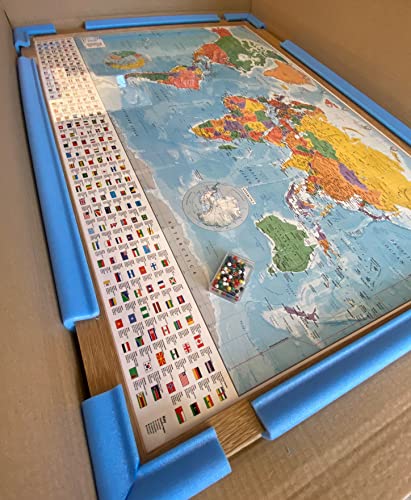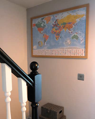 Mondo Mappa Bacheca Con cornice in legno di quercia include Pins - 96.5 x 66 cms (circa 96,5 x 66 cm)