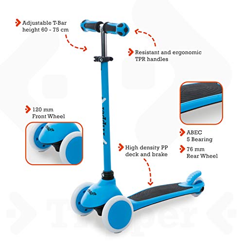 Facile da guidare - il monopattino tripper a 3 ruote è facilissimo da guidare oltre ad essere molto stabile: tiene al sicuro il nostro bambino durante l'utilizzo e quindi consente di migliorare le proprie abilità di guida più rapidamente rispetto allo standard degli altri monopattini