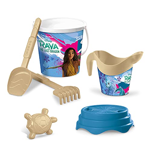 Mondo Toys - Raya e l'ultimo Drago Bucket Set, Set Mare Renew Toys con Secchiello, Paletta, Rastrello, Setaccio, Formina, Annaffiatoio Inclusi, multicolor, 28652