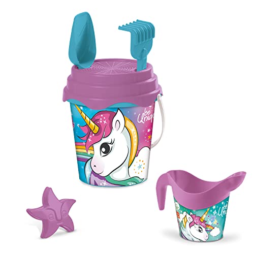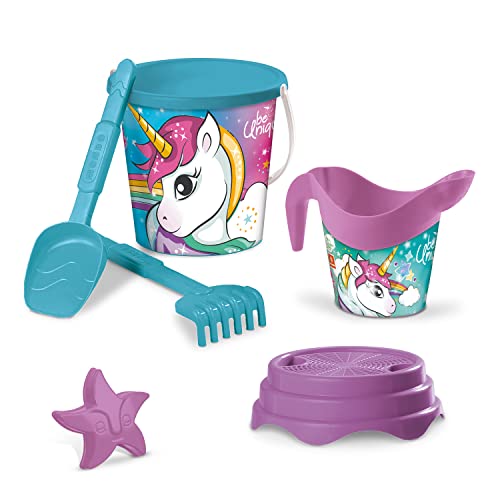 Mondo Toys Unicorn Bucket Set, Set Mare Renew Toys con Secchiello, Paletta, Rastrello, Setaccio, Formina, Annaffiatoio Inclusi, 28534