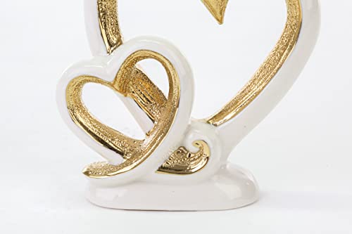 Mondocreazioni Cuori Piccoli Intrecciati in Porcellana Bianco e Oro Lucido soprammobili in Porcellana ST 54249