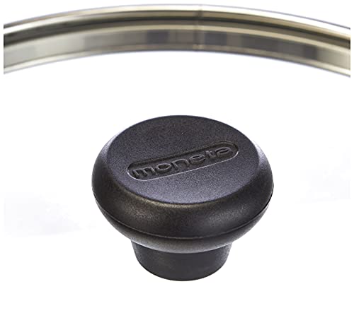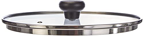 Coperchio vetro piatto Moneta, con bordo inox e pomolo in bakelite atermico