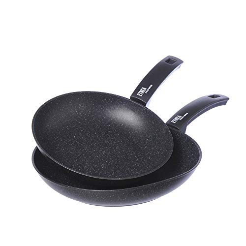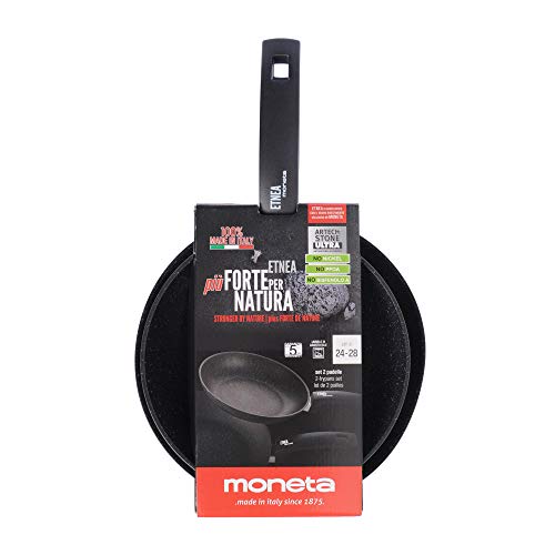 Moneta Etnea Set 2 Padelle, Alluminio, 2 Pezzi & 0008650132 Etnea Padella, Alluminio forgiato, Nero, 32 cm