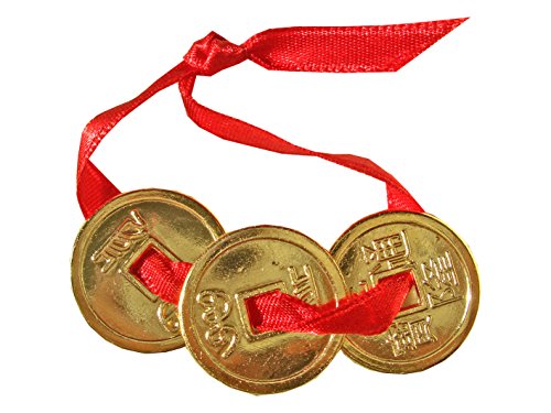 Feng Shui 3 monete d'oro 24KT oro/nastro