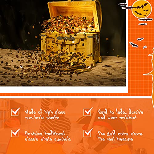 Multiuso: le monete false del forziere del tesoro sono adatte per la festa di compleanno a tema dei pirati per essere la decorazione della tavola o messe nella borsa regalo e nello scrigno del tesoro, nonché per la caccia al tesoro, Halloween, oggetti di scena, giochi di finzione, premi per le feste per i tuoi bambini, imbottitura per calzini, per creare un'impressionante decorazione per feste per i tuoi ospiti