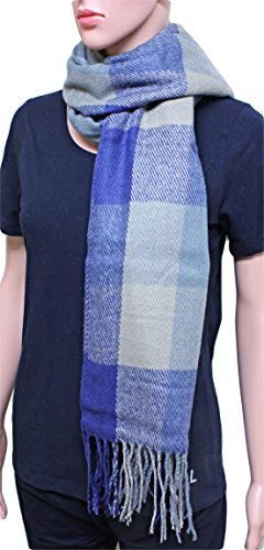 MONETTI FIA cappotto di scialle cappello - blu/grigio - 180 x 60 cm - sciarpa/sciarpa donna - checked - sciarpa/sciarpa invernale