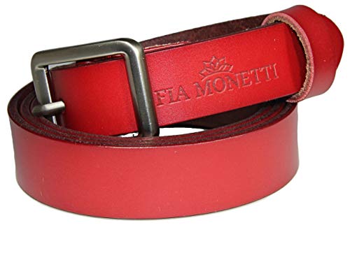 MONETTI FIA Cintura pelle con fibbia classica in elegante color rosso, larghezza 2,3 cm - lunghezza 115 cm (accorciabile).