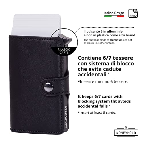Design aggiornato (Pre 2021) - Aggiornato alla fine del 2020 il nuovo design Moneyhold progettato in Italia unisce eleganza, stile e praticità in un unico prodotto. Mostra il tuo stile in ogni occasione e ti fa attirare l'attenzione
