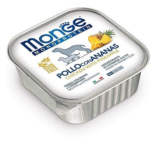 Contenuto della fornitura: Monge Monoprotein CHICKEN WITH PINEAPPLE, cibo umido per cani (cibo umido a base di pollo con ananas, senza coloranti, conservanti o zuccheri aggiunti, cibo per cani senza cereali, 150 g)