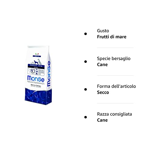 Contenuto della confezione: Monge Natural Superpremium Medium Senior Rich in Chicken, alimento secco per cani anziani (alimento secco a base di pollo, senza coloranti e conservanti, alimento di supporto all'intestino, 12 kg).