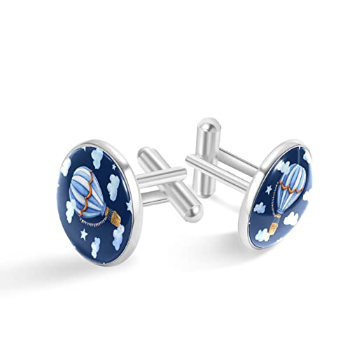 Mongolfiera con nuvole stelle Stampa Gemelli classici in acciaio inossidabile per uomo, gemelli per camicie, gioielli, regali di nozze d'affari