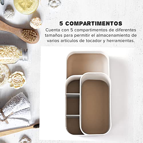 Organizer da bagno multifunzionale: il portaspazzolino MoniDecor è diviso in 5 scomparti. Fornisce spazio organizzato per spazzolini da denti manuali/elettrici, tubi per dentifricio, filo interdentale, rasoi, detergenti per il viso, pettini e altre esigenze quotidiane.