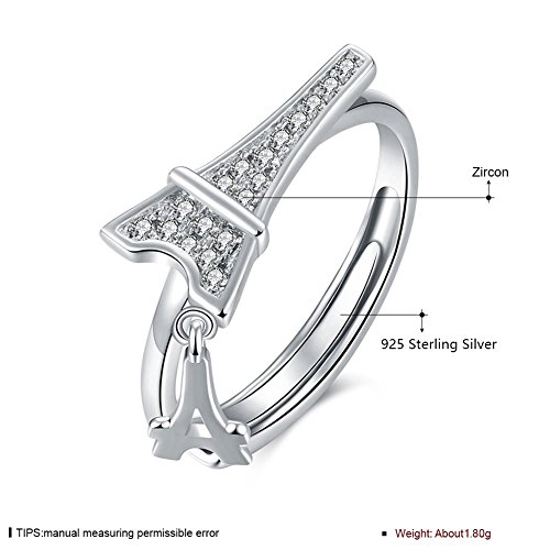 Monili Dell'Anello Aperto Della Torretta Di Parigi Dell'Argento Sterlina 925, bianca, 8