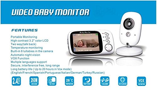 BW Baby monitor digitale wireless da 3,2 pollici con visione notturna, conversazione a 2 vie, monitoraggio della temperatura, ninne nanne integrate