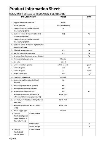 HP 27xq Monitor Gaming TN, Schermo 27 pollici LED/QHD, Risoluzione 2560x1440, Micro-Edge, Tecnologia AMD FreeSync, Tempo di Risposta 1 ms, Frequenza 144 Hz, Regolabile in Altezza, Pivoting 90°, Nero