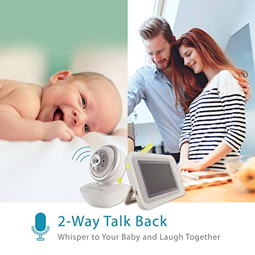 Baby Monitor, Moonybaby PT 60 Video Baby Monitor con Pan e Zoom - Schermo Diviso 4,3 Pollici, 2.4GHz, Audio 2 Vie NinnaNanna, Sensore Temperatura, VOX e Batteria Lunga Durata
