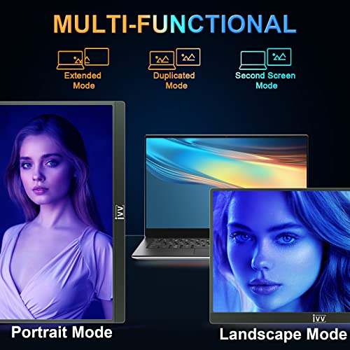 【Ampiamente Connesso】Il monitor portatile IVV è dotato di due porte USB 3.1 Gen2 di tipo C complete. Può connettersi facilmente allo smartphone e laptop di tipo C con funzionalità complete. Inoltre, è dotato di una porta Mini HDMI, anche su dispositivi senza una porta USB C, è possibile utilizzare un cavo Mini HDMI a HDMI per collegare il dispositivo al monitor.