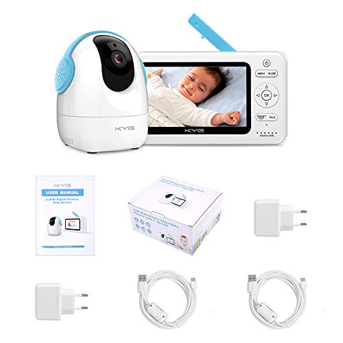 KYG Baby Monitor Schermo 5'' LCD Babyphone Telecamera 300m Trasmissione Wireless Audio Video Rotazione 360° 5m Distanza di Visione Notturna Bianco