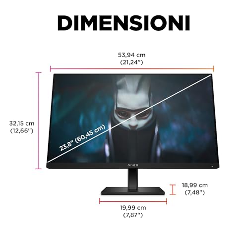 HP OMEN 24 FHD Monitor, Schermo da 23,8 Pollici Full HD, Risoluzione 1920 x 1080 Pixel, Pannello IPS 16:9 da 165Hz, 1 ms, DisplayHDR 400, Antiriflesso, 450 nits, AMD FreeSync, USB, HDMI, Nero