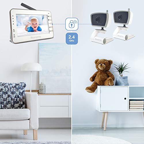 Baby Monitor Video Moonybaby Trust 30-2 con Visione Notturna - Schermo 4,3 Pollici, 2.4GHz, Audio 2-Vie e NinnaNanna, Sensore Temperatura, Modalità VOX, Fino a 4 Telecamere - Monitor con 2 Telecamere