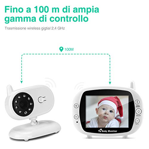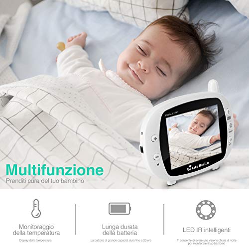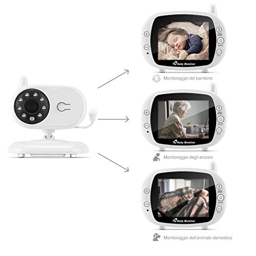 Baby Monitor, Videocamera BOIFUN con schermo da 3.5 ''Supporto batteria ricaricabile VOX Visione notturna Visione di temperatura 8 ninne nanne per bambino/anziano/animale domestico