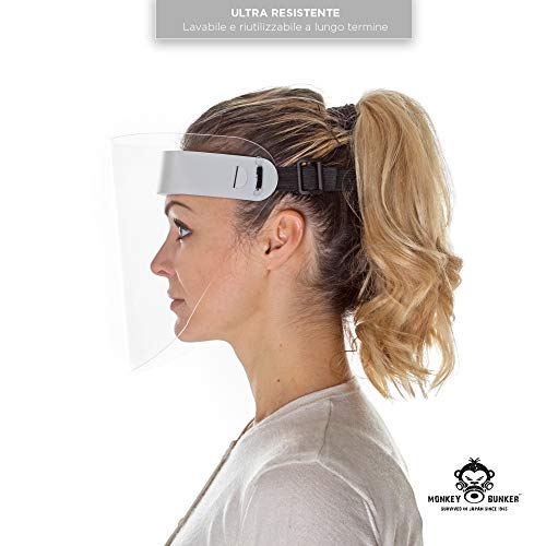 Monkey Bunker Visiera protettiva trasparente - Ultra resistente, Lavabile e Riutilizzabile, MADE IN ITALY