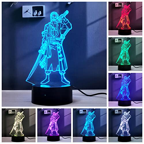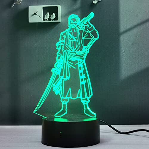 2 in 1, Monkey D. Luffy,Roronoa Zoro, lampada Anime LED 3D illusion, telecomando RGB a 16 colori, dsek luce notturna per ragazzi