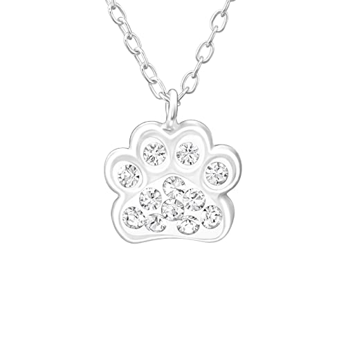 Monkimau, collana da bambina con ciondolo a forma di zampa in argento Sterling 925, con 12 cristalli Swarovski bianchi, catena da 39 cm (bianco)