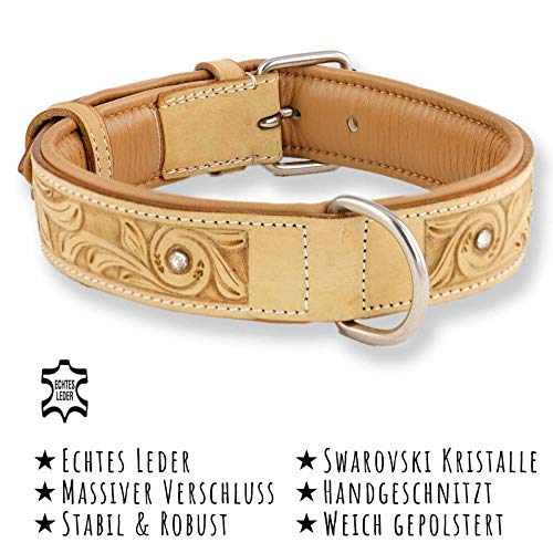 Di alta qualità, unico, per innamorarsi. Il collare finemente lavorato a mano è morbido e imbottito in diverse larghezze e lunghezze. Perfetto per cani di taglia piccola e grande, dalla XS alla XL.