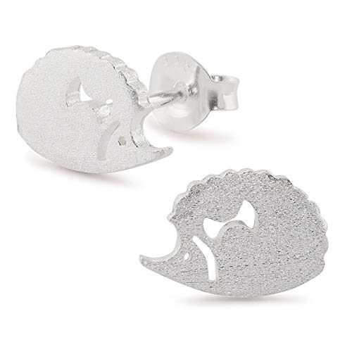 Monkimau Orecchini da bambina a forma di riccio, in argento sterling 925, opaco