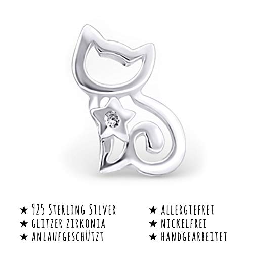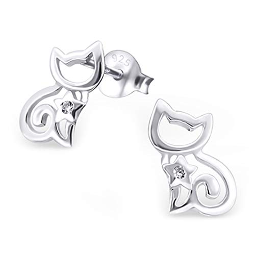 Monkimau Orecchini ragazza Orecchini gatto in argento sterling 925 con 2 cristalli