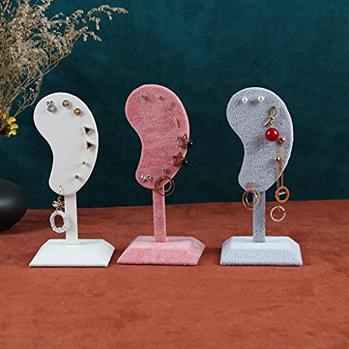 MONLEYTA Espositore per Orecchini a Forma di Orecchio alla Moda Supporto per Orecchini in Microfibra con Clip a Bottone Rosa