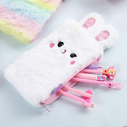 MONLEYTA Kawaii Peluche Coniglietto Coniglietto Sacchetto della Matita Astuccio per Il Trucco Sacchetto Portamonete Portamonete Arcobaleno
