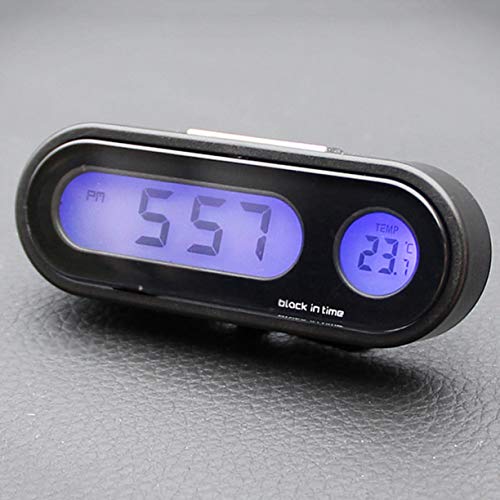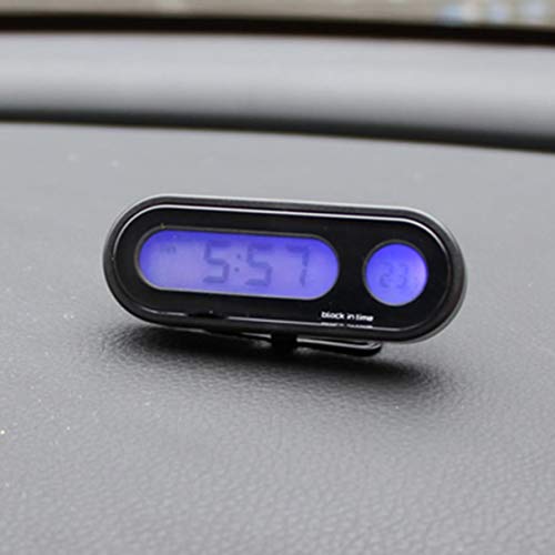 Monllack Termometro elettronico per Auto, Orologio elettronico per Auto 2-in-1 Termometro Luminoso Display Digitale a LED Mini Orologio da cruscotto Portatile Accessori per Auto (Nero)