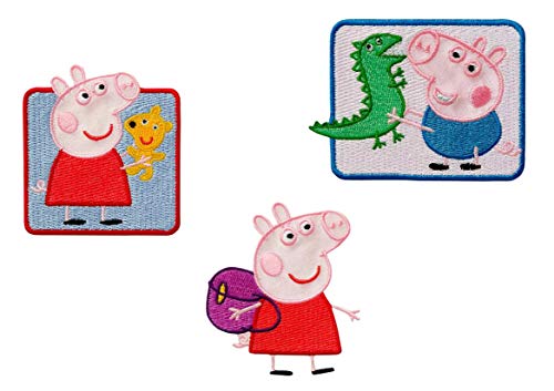 Mono-Quick Peppa Pig, 3er Set Toppe Ricamate da Cucire o Applicare con Il Ferro da Stiro, Poliestere, Multicolore, MD