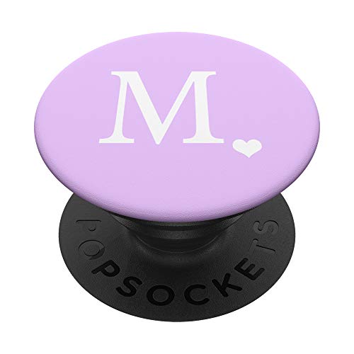 Monogramma a forma di cuore bianco con lettera M su lilla pastello PopSockets PopGrip Intercambiabile