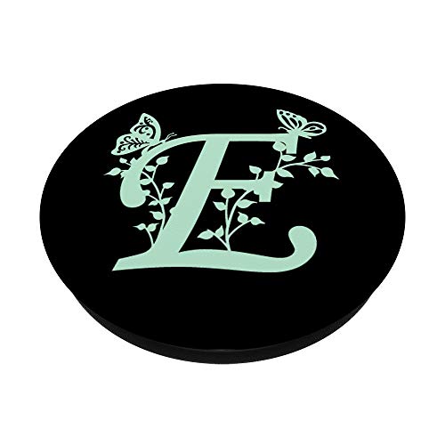 Monogramma iniziale lettera E farfalla verde menta nera PopSockets PopGrip Intercambiabile