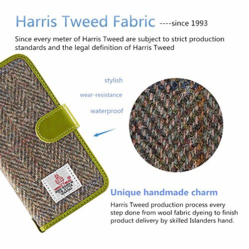 MONOJOY Cover iPhone X, Custodia iPhone 10 Custodia in Pelle, [ Harris Tweed ], Custodia Copertura di Vibrazione Portafoglio Flip Cover con Chiusura Magnetica per iPhone X / 10 (Verde)