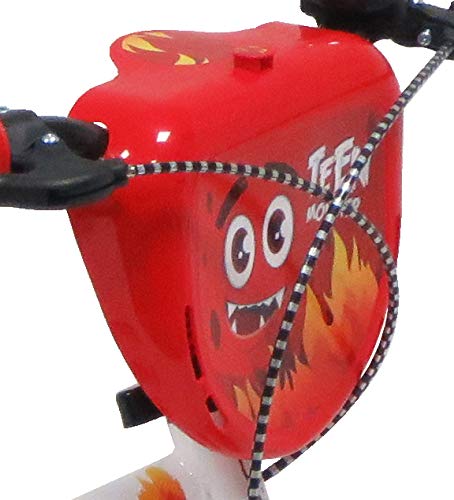 Bicicletta bambino, adatta dai 4 ai 6 anni, modello teen monster, dotato di mascherina anteriore, borraccia posteriore e campanello, colore bianco, rosso, nero