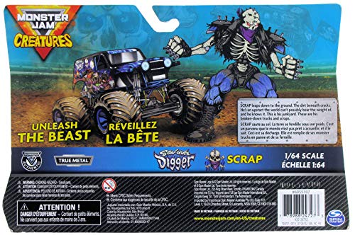 Monster Jam Creatures Official Son-Uva Digger 1:64 Scale Monster Truck and 5-Inch Scrap Figure Set