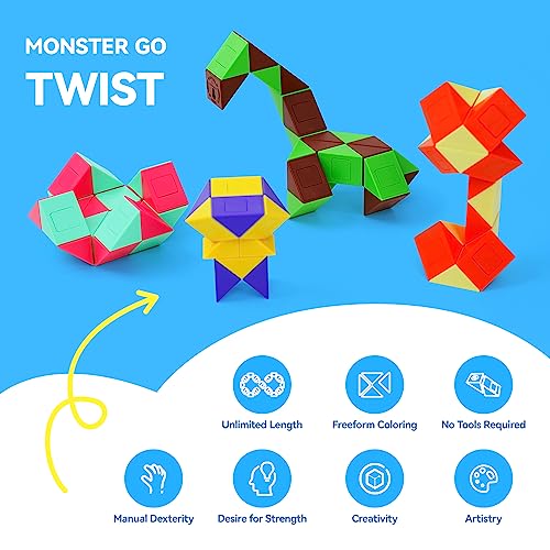 STIMOLA L'IMMAGINAZIONE: Torsiona, gira e modella il cubo serpente magico in migliaia di forme diverse, stimolando l'immaginazione dei bambini e migliorando le loro abilità di coordinazione occhio-mano. La sua superficie liscia, l'eccellente taglio degli angoli e la rotazione senza sforzo lo rendono una scelta regalo perfetta