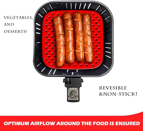 【Design Perforato】 Il rivestimento della friggitrice ad aria è progettato con perforazioni per ottimizzare il flusso d'aria attorno al cibo e distribuire il calore in modo uniforme. Il nostro cuscinetto per friggitrice ad aria in silicone è progettato per essere utilizzato come accessorio per friggitrice ad alte prestazioni con la tua attrezzatura.