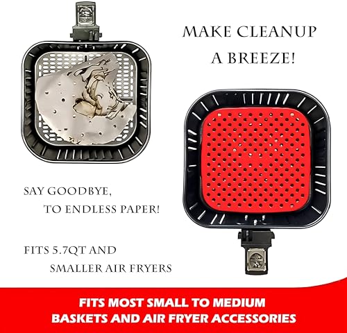 【Uso Versatile】Il nostro tappetino per friggitrice ad aria si adatta alla maggior parte dei cestelli della friggitrice ad aria da 5,8 QT o più grandi, nonché agli accessori della friggitrice ad aria come friggitrici ad aria, vassoi. È molto adatto per friggitrici ad aria, pentole a vapore, pentole a pressione, forni, ecc.