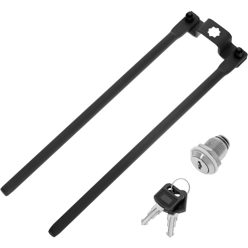 Kit serratura per ricarica armadi per 10 laptop, notebook o tablet, in nero. Kit composto da sbarre mobili e serratura. Corpo centrale M17 (filettatura 17 mm). Lunghezza della camma di 26 mm (dal centro). Lunghezza ciotola: 19 mm. Serratura a chiave piatta. Realizzato in metallo. La lunghezza delle barre è di 46 cm.